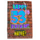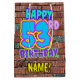 L'avant de ce joyeux design de sac cadeau d'anniversaire comporte le message "HAPPY 53RD BIRTHDAY", ayant une apparence vibrante, colorée, inspirée du graffiti, avec un nom de destinataire personnalisé. L'arrière - plan est décoré d'un motif d'inspiration murale en brique. Un sac-cadeau d'anniversaire très vivant comme celui-ci pourrait être une façon amusante d'envelopper un cadeau ou un cadeau donné à quelqu'un qui célèbre son 53e anniversaire. [~Z0000536]