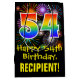 Ce modèle de sac cadeau coloré, amusant et passionnant sur le thème de l'anniversaire comporte un grand nombre de "54" avec un motif de style dégradé de spectre arc-en-ciel, ainsi que le message "Happy 54th Birthday," et un nom de destinataire personnalisé. Il possède également un motif arrière - plan coloré inspiré par les feux d'artifice de la fête. Un sac cadeau comme celui-ci peut être une façon amusante d'envelopper un cadeau d'anniversaire ou un cadeau donné à quelqu'un qui célèbre son cinquante-quatrième anniversaire. [~Z0000509]