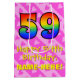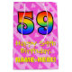 Ce modèle de sac cadeau optimiste, amusant et amoureux à thème d'anniversaire comporte un grand nombre de "59" avec un motif inspiré par un gradient de spectre arc-en-ciel, ainsi que le message "Happy 59th Birthday," et un nom de destinataire personnalisé. Il dispose également d'un motif arrière - plan gai aux formes et rayures de coeur rose. Un joyeux sac cadeau comme celui-ci pourrait être utilisé pour envelopper les cadeaux donnés à quelqu'un pour célébrer son cinquante-neuvième anniversaire. [~Z0000511]