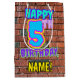 L'avant de ce joli coffret cadeau d'anniversaire comporte le message "HAPPY 5TH BANTHDAY", avec une apparence colorée, vibrante, graffiti et art urbain inspiré, avec un nom de destinataire personnalisé. L'arrière - plan dispose d'un motif inspiré de l'aspect d'un mur en brique. Un sac cadeau d’anniversaire comme celui-ci peut être une façon amusante d’envelopper un cadeau ou un cadeau pour célébrer le cinquième anniversaire de quelqu’un. [~Z0000536]