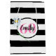 Marguerite blanche sur motif rayé noir et blanc avec nom et âge pour 60e anniversaire. L'âge et le nom peuvent être changés.