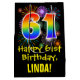 Ce sac cadeau coloré, amusant et passionnant à thème d'anniversaire dispose d'un grand nombre de "61" avec un motif inspiré par un gradient de spectre arc-en-ciel, avec le message "Happy 61st Birthday," et un nom de destinataire personnalisable. Il dispose également d'un motif arrière - plan coloré inspiré par l'allure d'un feu d'artifice festif. Un sac cadeau d'anniversaire comme celui-ci peut être une façon amusante d'envelopper un cadeau ou un cadeau qui est donné à quelqu'un qui célèbre son 61e anniversaire. [~Z0000509]