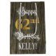 Ce luxueux et opulent design de giftbag à thème d'anniversaire comporte le message "Happy 62nd Birthday", ainsi qu'un nom de destinataire personnalisé. Une partie du message est en texte de style script sophistiqué. Le grand numéro "62e" présente une imitation/faux motif d'inspiration or. L'arrière - plan a un motif imitation/imitation à grains de bois. Un sac-cadeau orné à thème d’anniversaire comme celui-ci peut être utilisé pour donner un cadeau ou un cadeau pour célébrer le 62e anniversaire de quelqu’un. [~Z0000562]