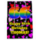 Ce modèle de sac cadeau d'anniversaire amusant et joyeux comporte un grand nombre de "66" avec un motif inspiré par un gradient de spectre arc-en-ciel, ainsi que le message "Joyeux 66e anniversaire", et un nom personnalisable. L'arrière - plan présente un motif de formes cardiaques rouges, violettes et roses de différentes tailles. Un cadeau d’anniversaire à thème comme celui-ci peut être utilisé pour donner un cadeau ou un cadeau pour célébrer le soixante-sixième anniversaire de quelqu’un. [~Z0000551]