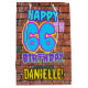 L'avant de ce joli coffret cadeau d'anniversaire comporte le message "HAPPY 66TH BIRTHDAY", avec un style urbain coloré, dynamique et inspiré du graffiti, en plus d'un nom de destinataire personnalisable. L'arrière - plan est décoré d'un motif d'inspiration murale en brique. Un giftbag coloré comme celui-ci pourrait être utilisé pour envelopper les cadeaux donnés à quelqu'un pour célébrer leur soixante-sixième anniversaire. [~Z0000536]