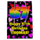 Cette conception de sac cadeau d'anniversaire joyeuse et amusante comprend un grand nombre de "67" avec un dégradé arc-en-ciel inspiré motif, avec le message "Happy 67th Birthday,", et un nom personnalisé. L'arrière - plan présente un motif de différentes tailles, aux formes de coeur rose, violet et rouge. Un sac cadeau d’anniversaire comme celui-ci peut être utilisé pour offrir un cadeau ou un cadeau pour célébrer le soixante-septième anniversaire de quelqu’un. [~Z0000551]