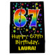 Ce modèle de sac cadeau d'anniversaire passionnant, amusant et dynamique comprend un grand nombre de "67" avec un motif de style dégradé de spectre arc-en-ciel, ainsi que le message "Happy 67th Birthday," et un nom de destinataire personnalisable. Il dispose également d'un motif arrière - plan coloré aux formes étoiles de différentes tailles. Un sac cadeau d’anniversaire comme celui-ci peut être une façon amusante d’envelopper un cadeau ou un cadeau pour célébrer le 67e anniversaire de quelqu’un. [~Z0000510]