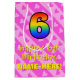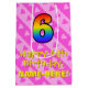 Ce giftbag d'anniversaire joyeux, amoureux et optimiste est doté d'un grand nombre de "6" avec un motif de style dégradé arc-en-ciel, avec le message "Happy 6th Birthday," et un nom de destinataire personnalisé. Il dispose également d'un arrière - plan amusant avec des formes de coeur rose dans un motif rayé. Un joyeux sac cadeau comme celui-ci pourrait être utilisé pour envelopper les cadeaux donnés à quelqu'un pour célébrer leur sixième anniversaire. [~Z0000511]