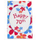 Fleurs marguerites orange, rouge et bleu sur arrière - plan blanc pour 70e anniversaire. La couleur Arrière - plan peut être modifiée. Numéro d'âge modifiable.
