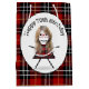 Sac Cadeau Moyen 70e Anniversaire Stick Girl sur Tartan Plaid