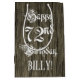 Ce modèle de giftbag à thème d'anniversaire somptueux et sophistiqué comprend le message "Happy 72nd Birthday", en texte de script élaboré, sur un arrière - plan motif faux look de bois. Il comporte également un nom de destinataire personnalisé. Un sac cadeau comme celui-ci peut être une façon respectable d'envelopper un cadeau d'anniversaire ou un cadeau donné à quelqu'un qui célèbre son soixante-dix-deuxième anniversaire. [~Z0000558]