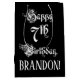 Ce design élégant et formel de sac cadeau d'anniversaire comporte le message "Happy 7th Birthday", en texte de style opulent, sur un arrière - plan de couleur noire. Il a également un nom de destinataire personnalisé. Un somptueux sac-cadeau d’anniversaire comme celui-ci peut être utilisé pour donner un cadeau ou un cadeau pour célébrer le 7e anniversaire de quelqu’un. [~Z0000557]