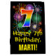 Ce giftbag design excitant, coloré et amusant à thème d'anniversaire comporte un grand nombre de "7" avec un motif de style dégradé de spectre arc-en-ciel, avec le message "Happy 7th Birthday," et un nom de destinataire personnalisé. Il possède également un motif arrière - plan coloré inspiré par l'aspect d'un feu d'artifice festif éclatant. Un sac cadeau d’anniversaire comme celui-ci peut être utilisé pour donner un cadeau ou un cadeau pour célébrer le 7e anniversaire de quelqu’un. [~Z0000509]