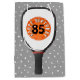 Joyeux 85ème anniversaire texte sur le pickleball orange et pagayer sur le pois gris et motif blanc. L'âge peut être changé.