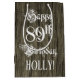 Ce modèle de sac-cadeau thématique d'anniversaire formel et orné comporte le message « Joyeux 89e anniversaire » dans un texte de style calligraphié élaboré, sur un fond à motif imitation bois. Il comporte également un nom de destinataire personnalisé. Un sac-cadeau comme celui-ci pourrait être une façon respectable d'emballer un cadeau d'anniversaire offert à quelqu'un qui fête son quatre-vingt-neuvième anniversaire. [~Z0000558]