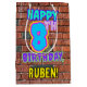 L'avant de ce joyeux design de sac cadeau d'anniversaire comporte le message "HAPPY 8TH BANTHDAY", avec une apparence dynamique, colorée, urbaine et inspirée du graffiti, en plus d'un nom de destinataire personnalisable. L'arrière - plan est décoré d'un motif d'inspiration murale en brique. Un giftbag à thème d’anniversaire comme celui-ci pourrait être une façon amusante d’envelopper un cadeau ou un cadeau pour célébrer le huitième anniversaire de quelqu’un. [~Z0000536]