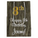 Ce modèle élégant, élégant et sophistiqué de sac cadeau d'anniversaire comporte un grand numéro ordinal "8th" avec une imitation/faux motif dégradé de style or, ainsi que le message de bienvenue d'anniversaire "Happy 8th Birthday", et un nom de destinataire personnalisé dans une police de style script. L'arrière - plan a un motif d'inspiration imitation bois. Un sac cadeau d'anniversaire comme celui-ci peut être une façon amusante d'envelopper un cadeau ou un cadeau qui est donné à quelqu'un qui célèbre son 8e anniversaire. [~Z0000520]