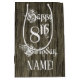 Ce design élégant et formel de giftbag d'anniversaire comprend le message "Happy 8th Birthday", en texte de style opulent, sur un faux look de bois inspiré arrière - plan motif. Il comporte également un nom de destinataire personnalisé. Un sac cadeau d'anniversaire comme celui-ci peut être une façon respectable d'envelopper un cadeau ou un cadeau qui est donné à quelqu'un qui célèbre son 8e anniversaire. [~Z0000558]