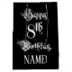 Ce somptueux et élégant sac cadeau d'anniversaire présente le message "Happy 8th Birthday", dans un texte de style opulent, sur un arrière - plan de couleur noire. Il a également un nom de destinataire personnalisable. Un giftbag à thème d’anniversaire comme celui-ci pourrait être une façon respectable d’envelopper un cadeau ou un cadeau pour célébrer le huitième anniversaire de quelqu’un. [~Z0000557]