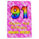 Ce design de giftbag d'anniversaire amusant, optimiste et aimant comporte un grand nombre de "91" avec un motif inspiré par un gradient de spectre arc-en-ciel, ainsi que le message "Happy 91st Birthday," et un nom de destinataire personnalisable. Il a aussi un joyeux coeur rose et raye motif arrière - plan. Un joyeux sac cadeau comme celui-ci peut être utilisé pour donner un cadeau ou un cadeau en l’honneur du quatre-vingt-dix-premier anniversaire de quelqu’un. [~Z0000511]