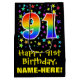 Ce giftbag design dynamique, excitant et amusant à thème d'anniversaire comprend un grand nombre de "91" avec un motif inspiré par un gradient de spectre arc-en-ciel, ainsi que le message "Happy 91st Birthday," et un nom de destinataire personnalisé. Il dispose également d'un motif arrière - plan coloré aux formes étoiles de différentes tailles. Un giftbag amusant comme celui-ci pourrait être utilisé pour envelopper les cadeaux donnés à quelqu'un pour célébrer leur quatre-vingt-dix-unième anniversaire. [~Z0000510]