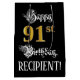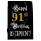 Sac Cadeau Moyen 91e anniversaire ~ Script fantaisie; Faux Gold Loo