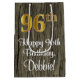 Cette conception élégante, élégante et sophistiquée de sac cadeau d'anniversaire comprend un grand numéro ordinal "96e" ayant une apparence imitation/faux or, ainsi que le message de voeux d'anniversaire "Happy 96th Birthday", et un nom de destinataire personnalisé dans une police de style script. L'arrière - plan a un motif d'inspiration imitation bois. Un luxueux sac-cadeau comme celui-ci pourrait être utilisé pour envelopper les cadeaux donnés à quelqu'un pour célébrer leur quatre-vingt-seize ans. [~Z0000520]
