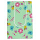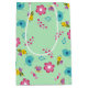 Sac Cadeau Moyen Abeilles, oiseaux et fleurs vert motif