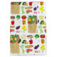 Le design présente une illustration originale avec des éléments de nourriture, notamment des fruits, des légumes, des fleurs, des fromages, du pain, du poisson, du lait et des essuie-tout. Tout comme un voyage au marché vert, au marché fermier ou à l'épicerie ! Parfait pour votre amateur de nourriture préféré.