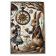 Entrez dans un pays merveilleux fantastique avec cette illustration enchanteresse d'Alice au pays des merveilles. Le White Rabbit, de style victorien, tient son thé avec une bonne humeur, tandis qu'Alice dans sa robe bleu iconique rêve d'aventure. Des champignons mystiques parsèment la scène, et un passionnant caillebotte porte une mystérieuse montre de poche - le temps est toujours l'essence du pays des merveilles ! Parfait pour les crèches, les chambres pour enfants ou tout espace qui nécessite une touche de charme magique. Cette oeuvre d'art exquise l'essence de l'histoire bien-aimée avec ses éléments détaillés d'inspiration steampunk et son atmosphère rêveuse.