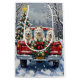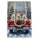 Bring fluffy, spirited charm to your holiday season with this adorable American Eskimo Dog Christmas design! This festive scene features three cheerful, snow-white American Eskimo Dogs sitting alertly in the back of a classic red pickup truck, nestled in a picturesque snowy winter forest. The vintage truck is adorned with a vibrant Christmas wreath, twinkling with red and gold ornaments and warm, glowing lights. Soft snowflakes gently fall, enhancing the winter wonderland effect. A decorated Christmas tree in the background completes this heartwarming picture, making it an ideal Christmas gift for any American Eskimo Dog owner, dog lover, or admirer of festive and beautiful dog art. This design perfectly captures the joyful spirit of the holidays.