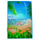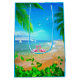 Flamant rose Love est mon art de la plage de rêve romantique avec tous mes éléments préférés, Palmiers, dauphins, mouettes, voilier, étoiles de mer, et bien sûr deux flamants roses face à face pour former leur célèbre forme de coeur rose.