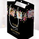 Créez un sac cadeau de collage photo élégant avec huit photos préférées! Personnalisez le modèle avec le nom et l'âge du bénéficiaire. Un design élégant avec des confettis, des étoiles et des photos en forme de carré, parfait pour la famille et les amis. Couleurs imprimées : éléments rose, noir, blanc et faux or.