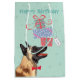 Joyeux salutations d'anniversaire avec ce joli design avec un Malinois belge souriant équilibrant une pile de cadeaux d'anniversaire sur son nez. Le texte peut facilement être modifié; il suffit de cliquer sur le bouton customiser.
