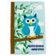 Regarde qui a un anniversaire ! Chouette bleue amusante dans une scène boisée avec ciel bleu et nuages moelleux
