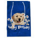 Sac Cadeau Moyen Anniversaire Golden Retriever Sur Cuir Bleu
