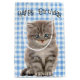 Cute chaton gris sur blanc et bleu défraîchi en vichy arrière - plan pour l'anniversaire. Le texte peut être modifié.