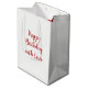 Sac Cadeau Moyen Anniversaire Rose rouge sur satin blanc