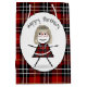 Sac Cadeau Moyen Anniversaire Stick Girl sur Tartan Plaid