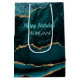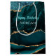Sac Cadeau Moyen Anniversaire, Turquoise, Or & Agate Noir, Nom Blan