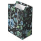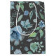 Sac Cadeau Moyen Aquarelle Bleu sur Floral Gris Foncé
