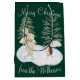 Ce sac cadeau de Noël ou de vacances personnalisé vous offre une aquarelle d'hiver chaude et confortable. Deux mignons petits animaux de forêt, un hérisson et un lapin, font du patin à glace parmi les arbres. L'arrière - plan est une riche couleur verte de forêt.