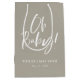 Neutral Oh Baby Simple Calligraphie Neutral Baby shower Medium Cadeau Bag dispose d'une calligraphie amusante et moderne sur des couleurs audacieuses et solides.