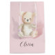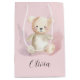 Décor d'ours en peluche à l'aquarelle mignonne pour baby shower ou faire-part de naissance. Vous pouvez changer l'arrière - plan facilement pour le bleu si vous avez un bébé garçon.