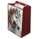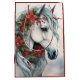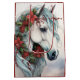 Sac Cadeau Moyen Beau Cheval Blanc avec Fleurs Rouges Noël