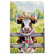 Sac Cadeau Moyen Birthday Cow Wearing a Floral Print Hat