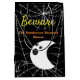 Sac cadeau avec "Attention" et texte personnalisé Black with White Spider Webs et mignon Ghost Fun et Friendly Friendly Halloween Party / Haunted House Party.