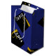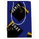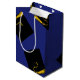 Sac cadeau de graduation créative pour la grade avec capuchon de graduation noir et or sur arrière - plan bleu. Modifier le texte pour ajouter son nom et son année de classe supérieure.
