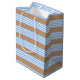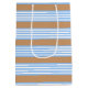 Sac Cadeau Moyen Bleu et blanc cinq bandes motif avec bronze