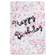 Des bonbons d'anniversaire colorés s'arrosent sur un arrière - plan blanc avec un texte d'anniversaire heureux. La couleur Arrière - plan peut être modifiée. Le texte est modifiable.